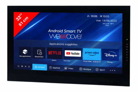 Le téléviseur 81 cm SMART ANDROID TV WEMOOVE WM-LBFKTV323SMART_A11 s'encastre astucieusement dans un meuble de cuisine de 90 cm de large et de 45 cm de haut et vous permet de profiter de toutes vos applications, musiques et vidéos à tout moment. Il remplace tout simplement une porte ce qui permet de conserver l'espace de rangement du meuble. Avec son design en verre et cadre noir, il s'intégrera parfaitement dans la cuisine. Sa dalle haut de gamme anti-trace en verre trempé de 4 mm d'épaisseur permet de conserver un niveau de transparence élevé pour une image ultra lumineuse et aux couleurs éclatantes. Équipé de tous les tuners numériques (DVB-T/T2/C/S2) compatibles avec le standard de compression HEVC/H.265 ainsi que de toutes les autres connectiques nécessaires (prises HDMI, ports USB,...) vous pourrez réceptionner à coup sûr tous vos programmes préférés ! L'interface Smart Android TV 11 vous permettra d'accéder à des milliers de contenus applicatifs, que vous pourrez piloter avec la télécommande AirMouse ou à l'aide de votre voix avec Alexa et vous pourrez même partager le contenu de votre smartphone sur l'écran d'un simple clic. Conçu pour la cuisine, il résiste à de fortes températures ce qui permet de l'installer sans encombre au-dessus d'un four par exemple. Les projections et autres taches de gras ne lui font pas peur non plus, elles seront éliminées en un clin d'œil d'un simple coup d'éponge ! Pour une installation en toute simplicité des ferrures de relevage Kessebohmer Free Flap Forte sont livrées avec votre téléviseur encastrable.